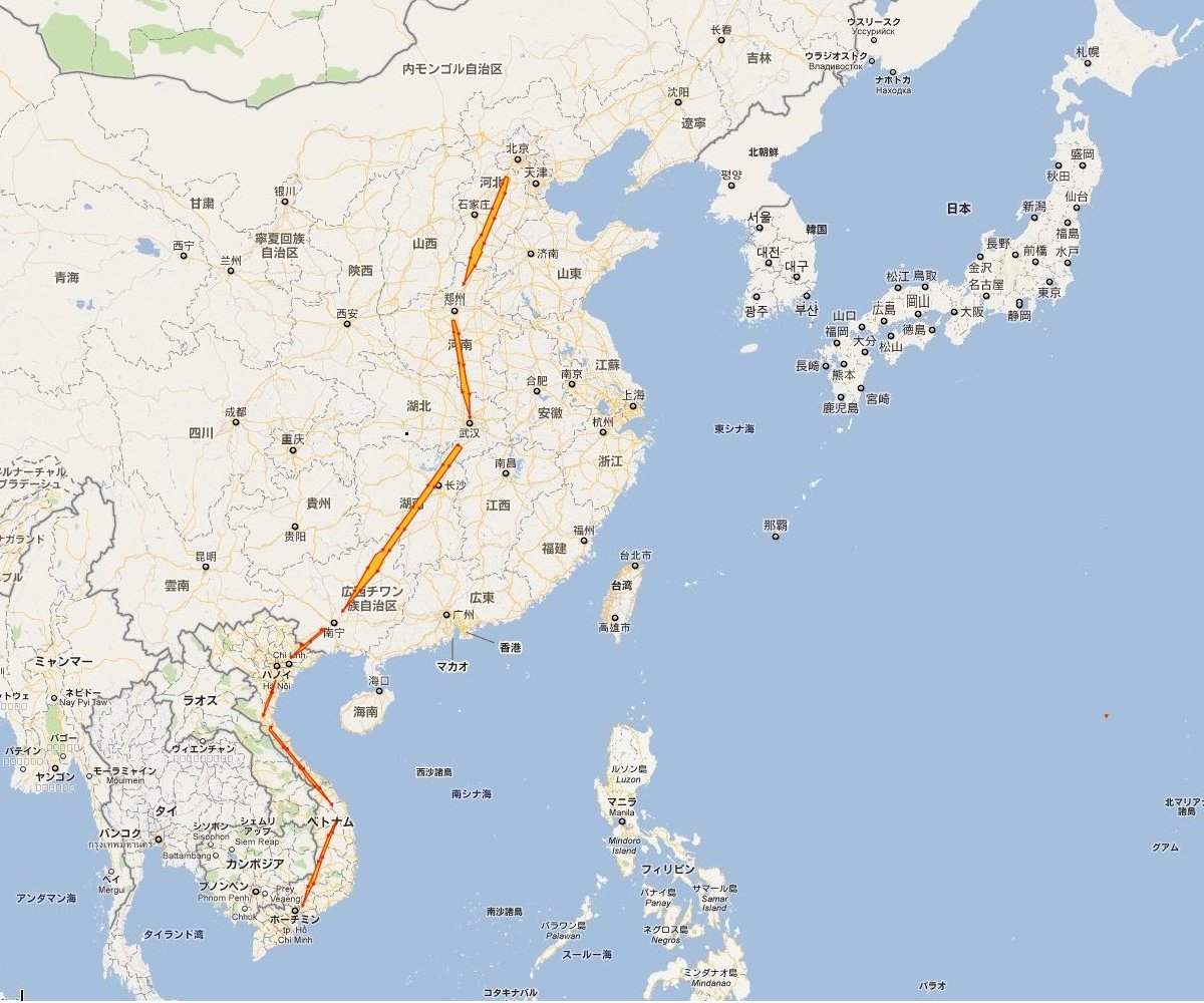 北京からサイゴン(ホーチミン市)まで国境を越えて約5,000Km列車の旅。