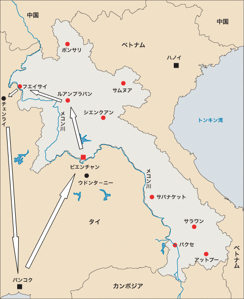■2006年7月20日:成田を出発。タイのバンコクから 夜行列車に乗ってラオスとの国境の町(ノーンカーイ)まで移動。