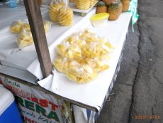 ◇カルボンマーケットでビニール袋入りのパイナップルを購入して食べ歩き。フィリピンのパイナップルは最高に美味しい 20ペソ 「お店のお姉ちゃん」 |