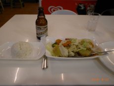 ![]() ◇AABBQでいただいた夕食。肉野菜ライスとビール。AABBQはチェーン店で綺麗なレストランです。料金も安く、料理の写真付きメニューもあります。 213ペソ(約470円) 「お店」 |