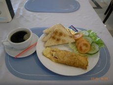 ◇ブルーフィンズ リゾート(BlueFins Resort)ホテルの朝食。ビュッフェスタイルではありません。チョイス方式です。 |
