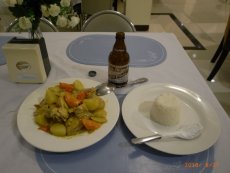 ◇夕食は肉の煮物と目玉焼きとご飯。ご飯はどこでも美味しくない。食べれれば文句なし。 100ペソ(約220円) 「お店」 |