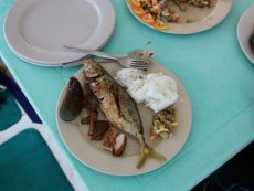 ◇レンタルバイクでボホール島を回っている途中の村の食堂でいただいた昼食。 |
