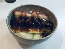 ![]() ◇フィリピン最後の夕食はレチョン丼(豚丼LECHONMACAV) 皮はパリッとし、脂身のねっとりした部分が多く、豚の角煮のような柔らかさは無かった。タレは甘め。 135ペソ |