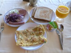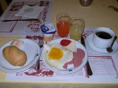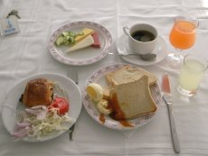 ◇ホテル「パンシー」の朝食。夕食は豪華でしたが、朝食は質素な感じです。 |