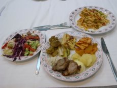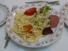 ![]() ◇夕食は同じく「ル・リパブリック」でナポリタン6D(約350円)ナポリタンは先日に同じく麺は柔らかくマトンの塊が乗っているがスジが多く硬い。量は多いです。 チュニジアン・サラダ2.9D(約170円) |