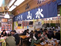 すぐに「まぐろ 山水」を訪問します。丼とにぎりがありますが、ほとんどの人は丼を食べてます。