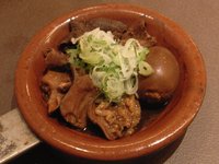 土鍋でぐつぐつ煮える煮込みの柔らかさはさすがです。煮込みの汁にガーリックトーストをつけていただくのがオーソドックスないただき方です。