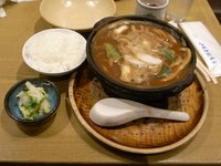 名古屋最後の食事に山本屋総本家「玉子入煮込うどんと御飯」をいただきました。