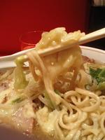 麺=そんなに太くない平麺、かなり柔らかめに茹でてある。