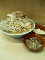 野菜コールしたので、脂とタレがプラスされる。豚は柔らかいがショッパめ、野菜と一緒に喰うと丁度良い。